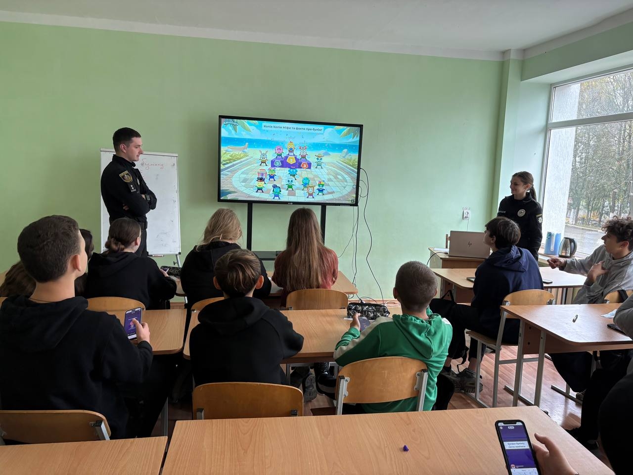 Зустріч провели інспектори Служби освітньої безпеки - Олександр Чопик та Валерія Сандуляк. Вони у доступній формі розповіли школярам про різні види насильства, шляхи його запобігання, відповідальність за протиправні дії та можливості отримання допомоги у разі небезпеки.